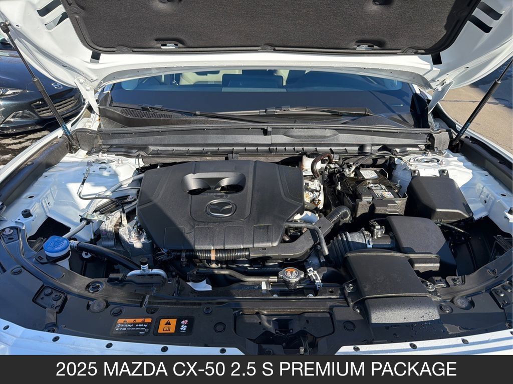Certified. Wind Chill Pearl 2025 Mazda CX-50 2.5 S Premium Package 4D Sport Utility AWD 6-Speed Automatic SKYACTIV® 2.5L 4-Cylinder DOHC 16V 25/31 City/Highway MPG