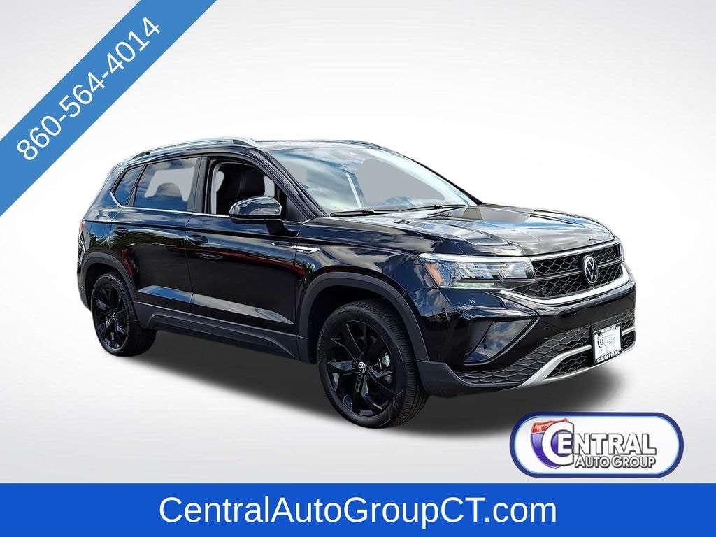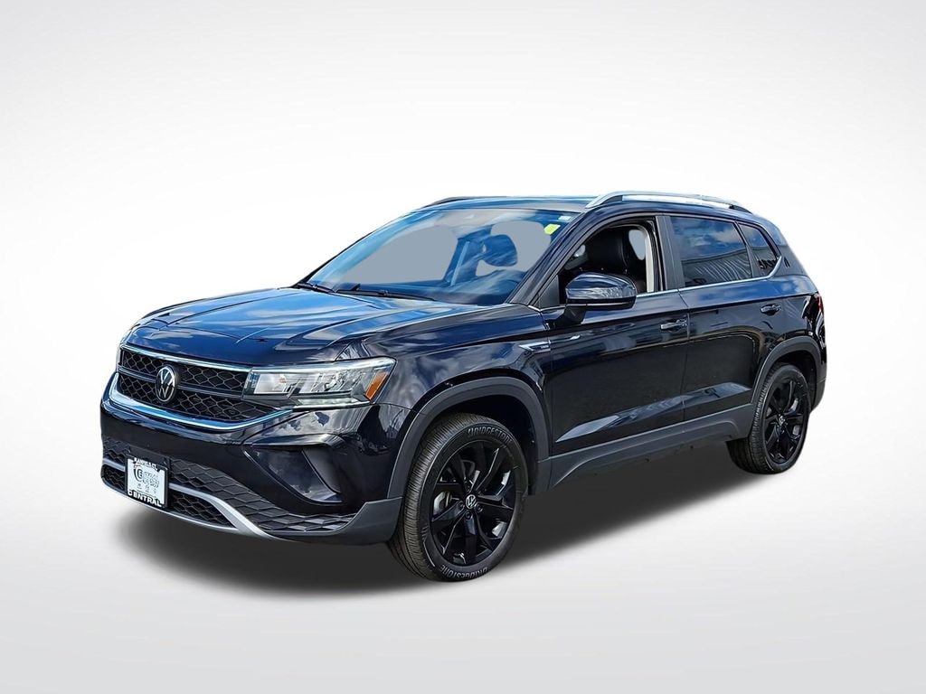 Certified. Black 2023 Volkswagen Taos 1.5T SE AWD 7-Speed DSG Automatic with Tiptronic 1.5L I4 Turbocharged DOHC 16V LEV3-SULEV30 158hp 25/32 City/Highway MPG