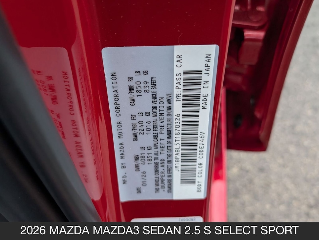 New 2026 Mazda3 Sedan 2.5 S Select Sport SEDAN