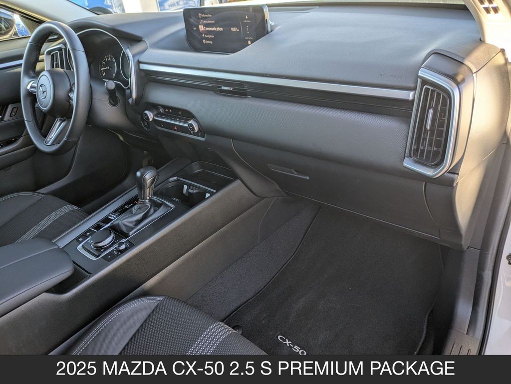 Certified. Wind Chill Pearl 2025 Mazda CX-50 2.5 S Premium Package 4D Sport Utility AWD 6-Speed Automatic SKYACTIV® 2.5L 4-Cylinder DOHC 16V 25/31 City/Highway MPG